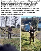 Wir danken allen Mitgliedern des Freundeskreis Neumarkt, der Vice Bürgermeisterin Elena Paris mit Frau Zanotti, Marco Dalvit, Hans Zambardi, und allen Freundeskreis Rheinfelden Mitgliedern und den Bürgern von Neumarkt, es waren fünf unvergessliche Tage. Vors. NQ.